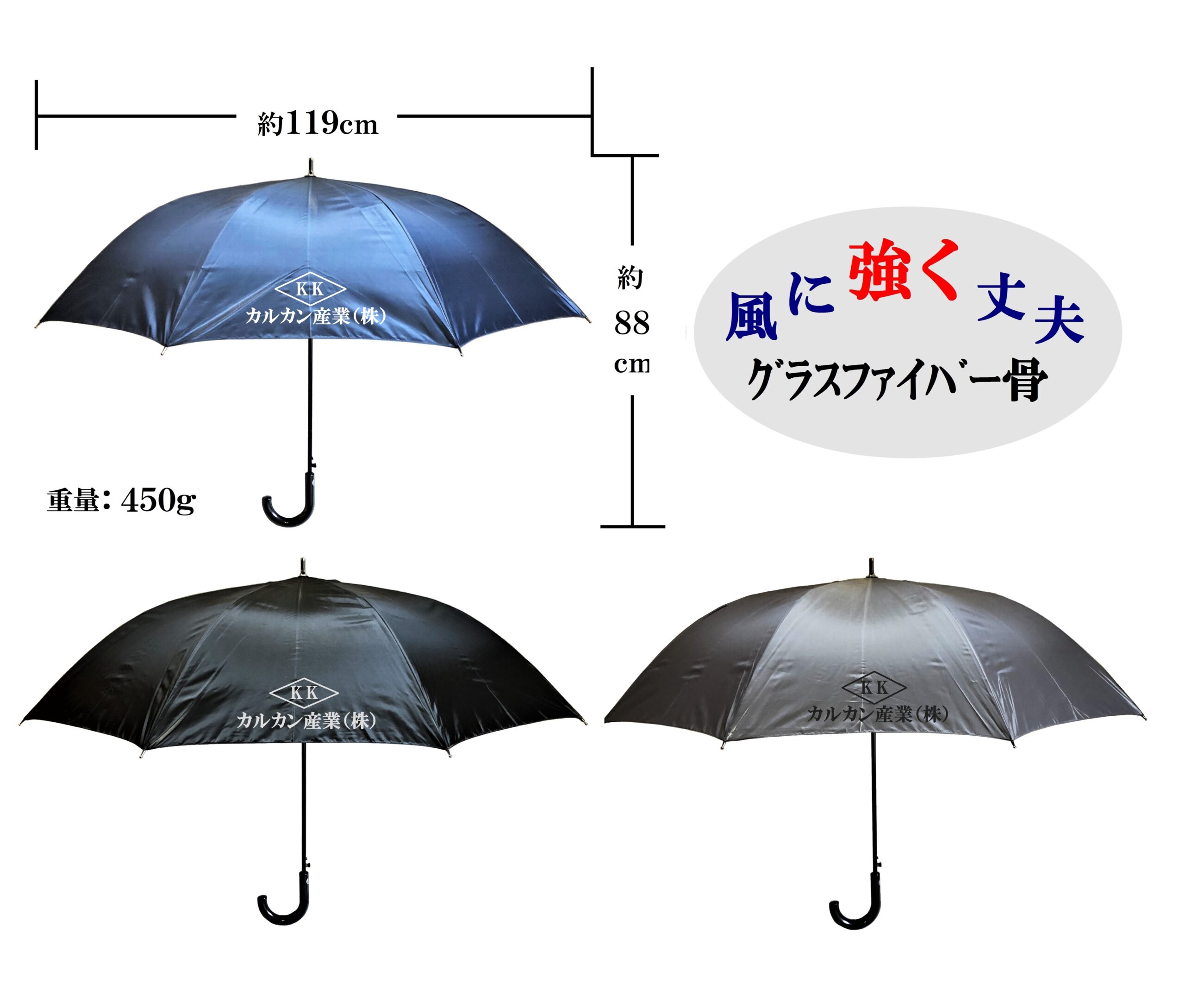風に強く丈夫な傘へ名入れ印刷できます!