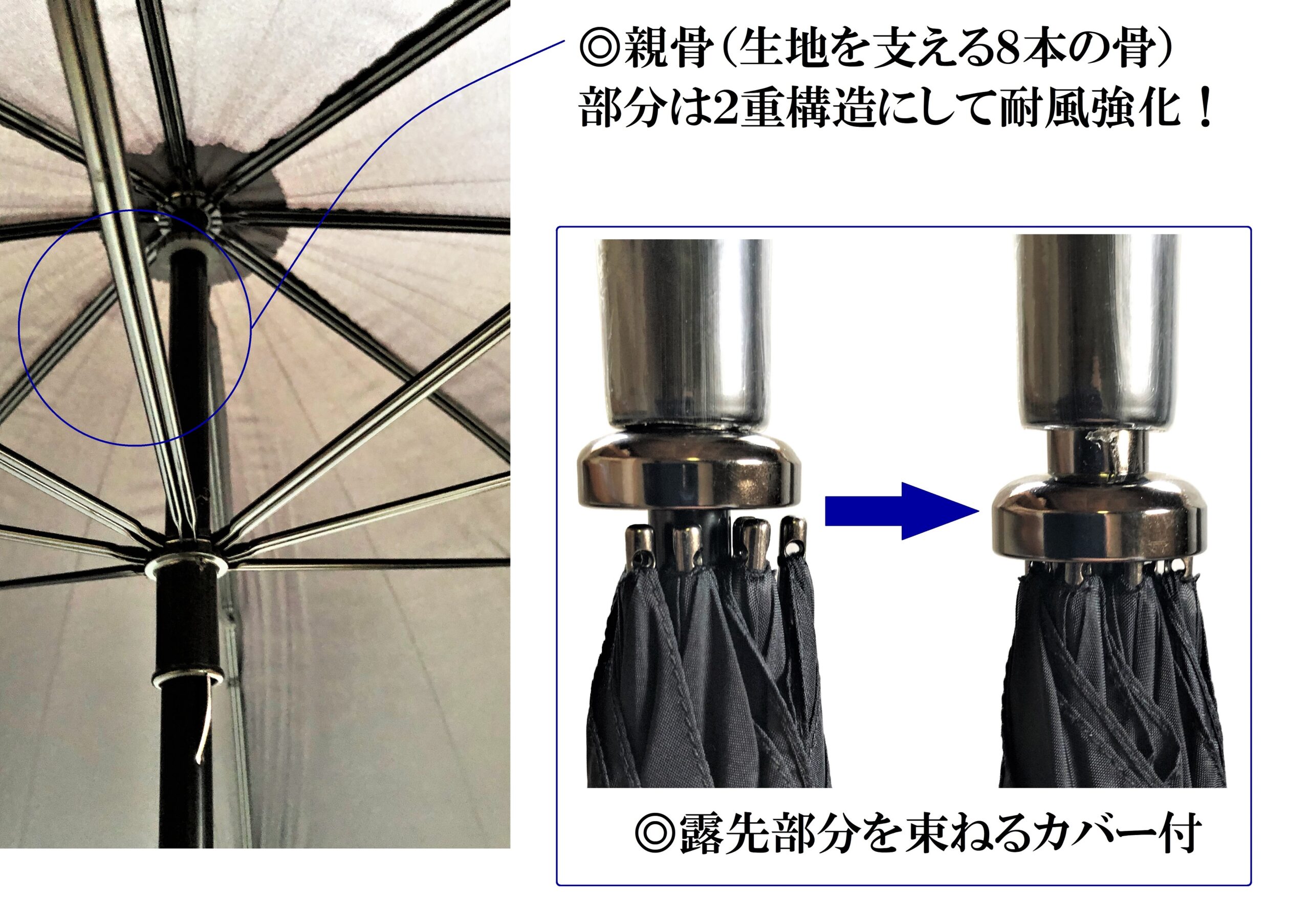 骨部分:スチール(黒電着)8本W溝骨